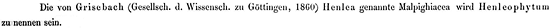 Henlea Griseb. is usually cited as having been published in Abh. Königl. Ges. Wiss. Göttingen 9: 37. 1860, but that volume was not published until 1861. The name Henlea was published on p. 37 of an 1860 preprint of an article with the title, "Erläuterungen ausgewählter Pflanzen des tropischen Amerikas." We have not seen that preprint; the description reproduced above is from p. 37 of the Abhandlungen. We assume the text was not changed from the preprint.