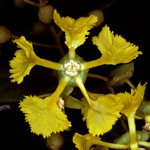 Scandent shrubs and woody vines; vegetative hairs stellate; stipules borne on base of petiole; leaves bearing 1 or 2 pairs of glands at apex of petiole and/or on base of lamina. Inflorescences terminal and lateral, variously grouped; pedicels short-pedunculate or subsessile; floriferous bracts and bracteoles eglandular, persistent or deciduous. Sepals imbricated and completely concealing petals in enlarging bud, eglandular, reflexed to revolute in anthesis, elongating and becoming stiff and spreading in fruit; corolla bilaterally symmetrical, the posterior petal slightly smaller than the lateral petals; petals glabrous, the limb oblate (wider than long); lateral petals with the margin erose or irregularly dentate to nearly lacerate; androecium radially symmetrical; stamens glabrous, the filaments alike, proximally connate; anthers slightly longer opposite sepals than opposite petals; pollen with several poorly developed colpi or lacking ectoapertures and several randomly dispersed pores; gynoecium bilaterally symmetrical, the carpels (2) 3; styles as many as carpels, distinct, slender, the anterior style slightly longer than the posterior 2, the capitate stigmas apical but somewhat reflexed abaxially and briefly decurrent adaxially. Fruit dry, probably dispersed intact with the enlarged winglike sepals, tardily schizocarpic into (2) 3 small nutlets; nutlets rugose, with a prominent dorsal ridge or rudimentary winglet; developing seed embedded in spongy tissue (perisperm?), the mature seed completely filling the locule. Chromosome number: n = 29 (30) (W. R. Anderson, 1993a).