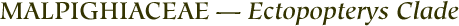 This clade comprises the single genus Ectopopterys. Both morphology and the phylogenetic tree published by Davis & Anderson (2010 [pdf]) place Ectopopterys among the more derived clades of wing-fruited vines, but support is lacking for the branches in that part of the tree, and we still do not know what the closest sister of Ectopterys may be.