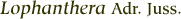 Lophanthera and Andersoniodoxa have prominent longitudinal wings on the outer locules of the anthers, found nowhere else in the Galphimia clade (the vesicles on the anthers of Verrucularia may be homologous with those wings). Similar anther wings are found in the genera Acmanthera and Pterandra of the Acmanthera clade, presumably the result of parallel evolution. See Davis et al. (2020a) for a discussion of the position of Lophanthera within the Galphimia clade.