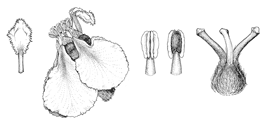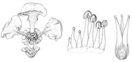 That petal is very often different in size, shape, color, stance, or other aspects from the other four petals. Across the flower is the odd sepal, which in the New World is often eglandular when the four lateral sepals are biglandular.