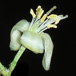 Aspidopterys wallichii. a. Flowering branch. b. Node with interpetiolar stipules. c. Base of lamina, abaxial view. d. Detached large leaf, adaxial view. e. Flower bud with pedicel and peduncle, subtended by bract and bracteoles. f. Flower, lateral view. g. Detached petal. h. Androecium laid out, abaxial view, the stamens with longer filaments opposite sepals. i. Anther, adaxial view. j. Gynoecium. k. Distal portion of style. l. Samaras, abaxial view (left) and adaxial view (right). m. Embryos. n. Old flower after fall of samaras, showing torus subtended by lobed glandular disc. Scale bar equivalents: a, 4 cm; b, 8 mm; c, 4 mm; d, 4 cm; e–g, 4 mm; h, 2 mm; i, 1.5 mm; j, 2 mm; k, 0.7 mm; l, 2 cm; m, 8 mm; n, 4 mm. Based on: a–c, e–k, Kaul s.n., MO; d, Singh 387, NY; l–n, Raizada s.n., NY. Drawn by Karin Douthit. © University of Michigan Herbarium.