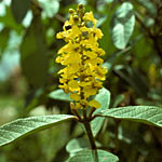 1. Petals all bright yellow; pedicel straight in bud; anterior 7 (–9) stamens bearing fertile horseshoe-shaped anthers, the posterior 3 (–1) stamens represented by short staminodes bearing tiny, rudimentary, sterile anthers; ovary with only 1 locule developed; fruit 7–10 mm long, 4–5 mm in diameter, asymmetrical, proximally gibbous, distally sulcate; pollen 4 (5)-colporate.