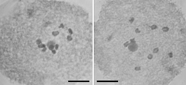 Meiotic chromosome figures, prophase I, n = 10. Scale bars = 10 µm. Anderson 12500, MICH.